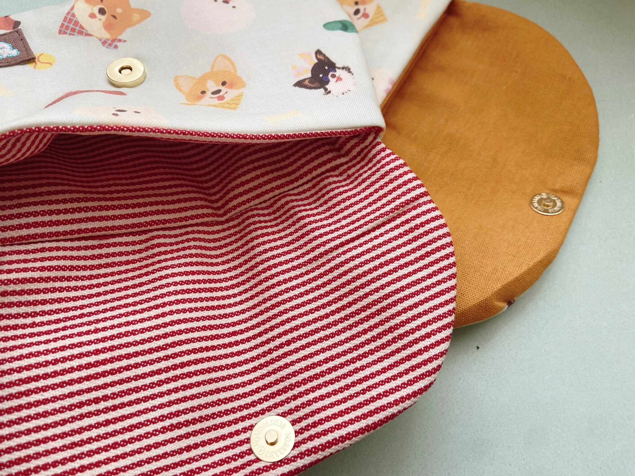 裏地の色はマスタードと赤ボーダー柄です。